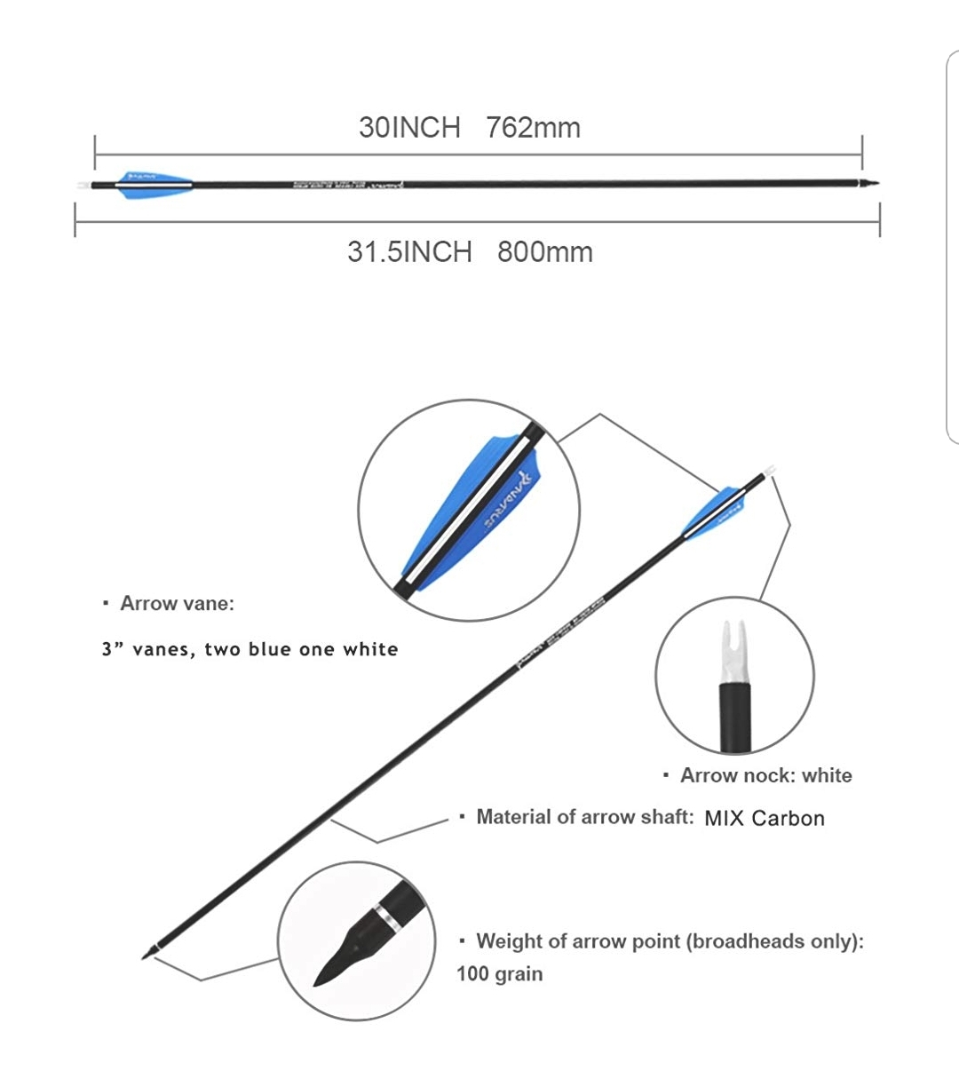 - Arrow Fletched with 3" Vanes, Nocks and Practice Tips